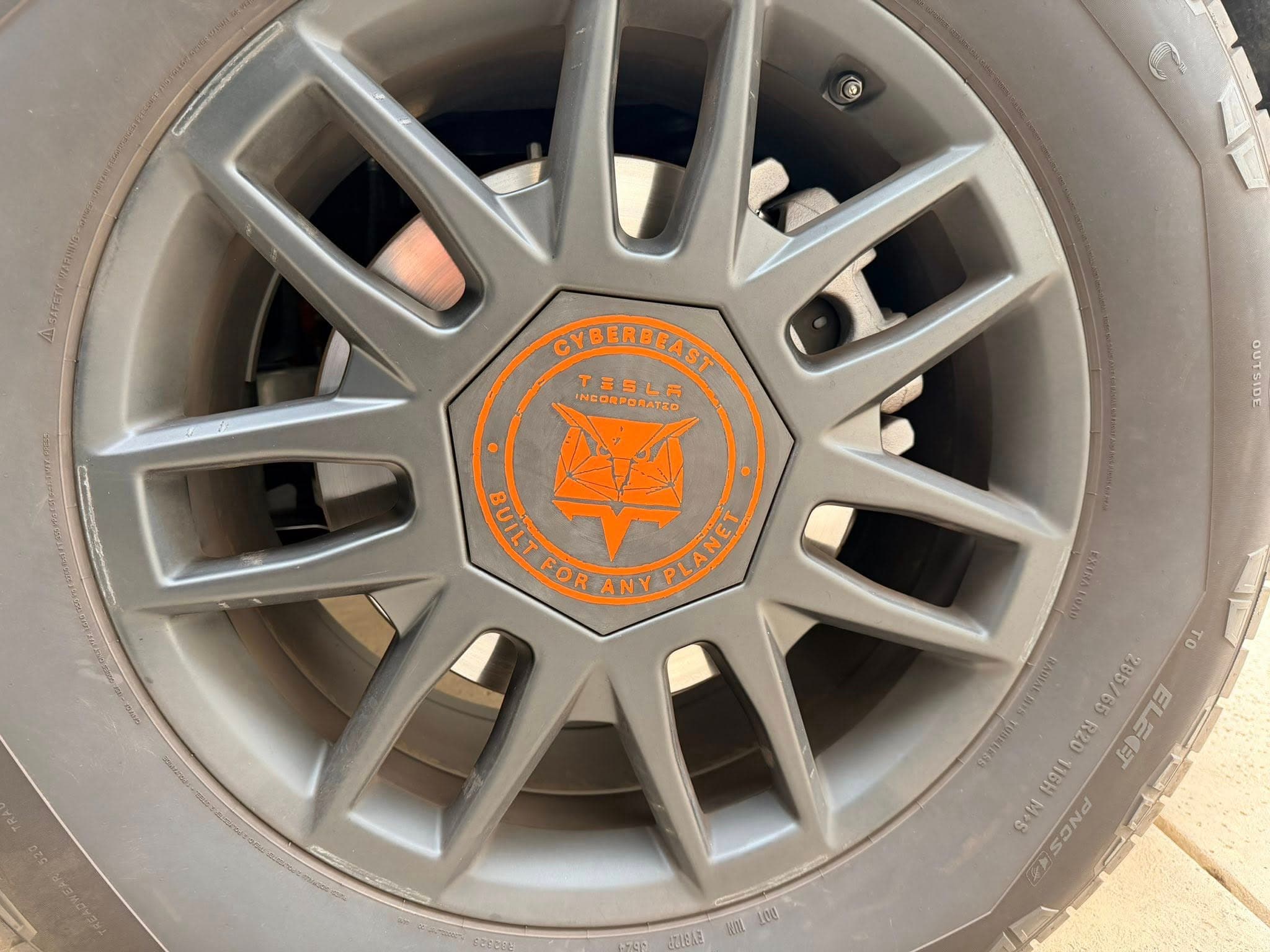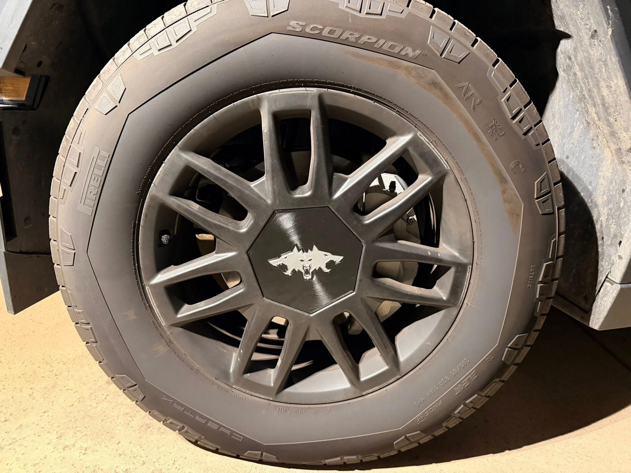 Hub caps, antlers, and trim pieces for the Tesla Cybertruck.