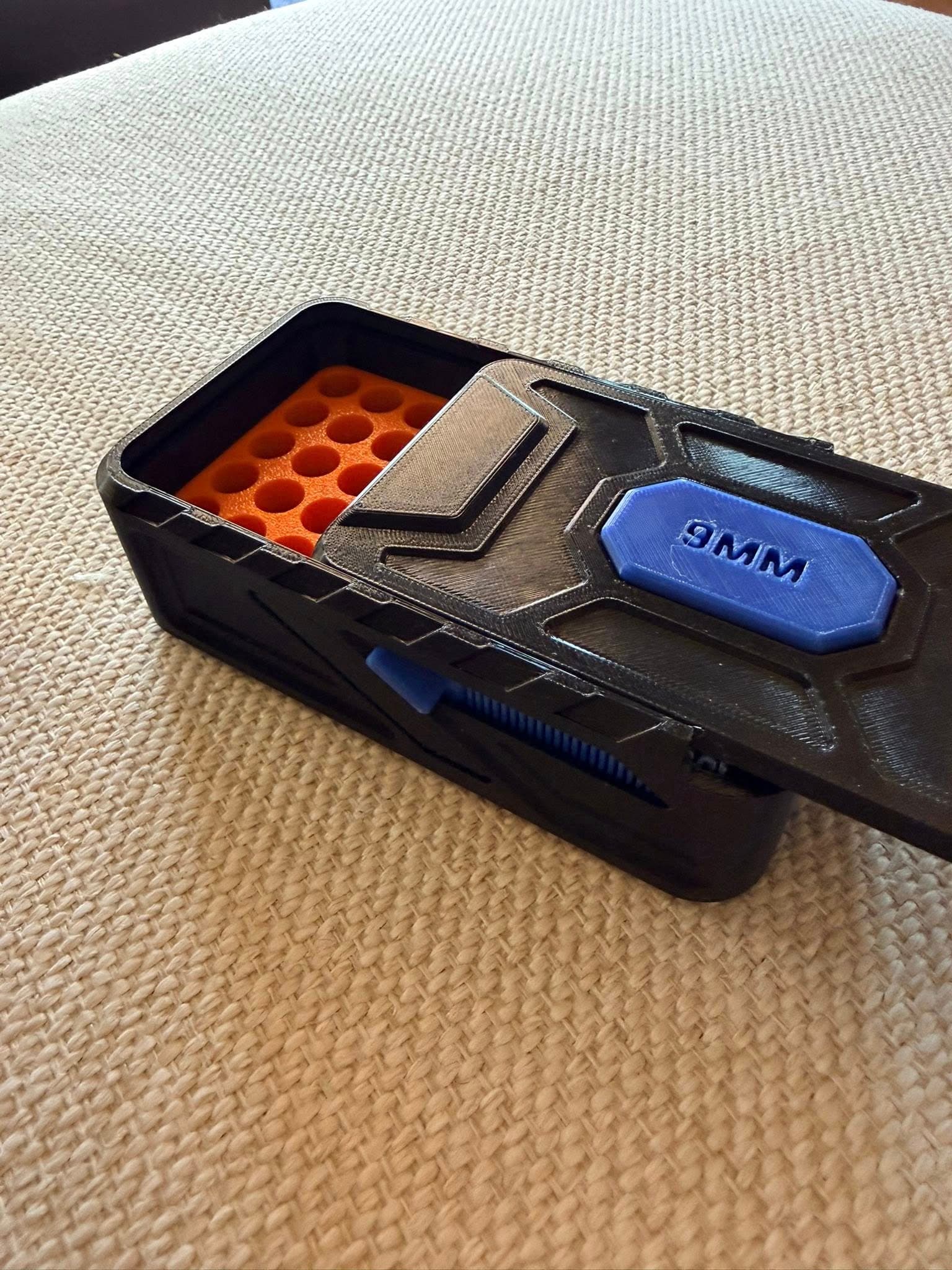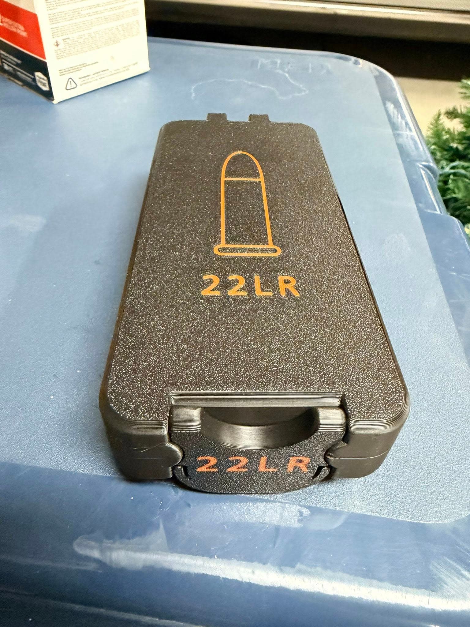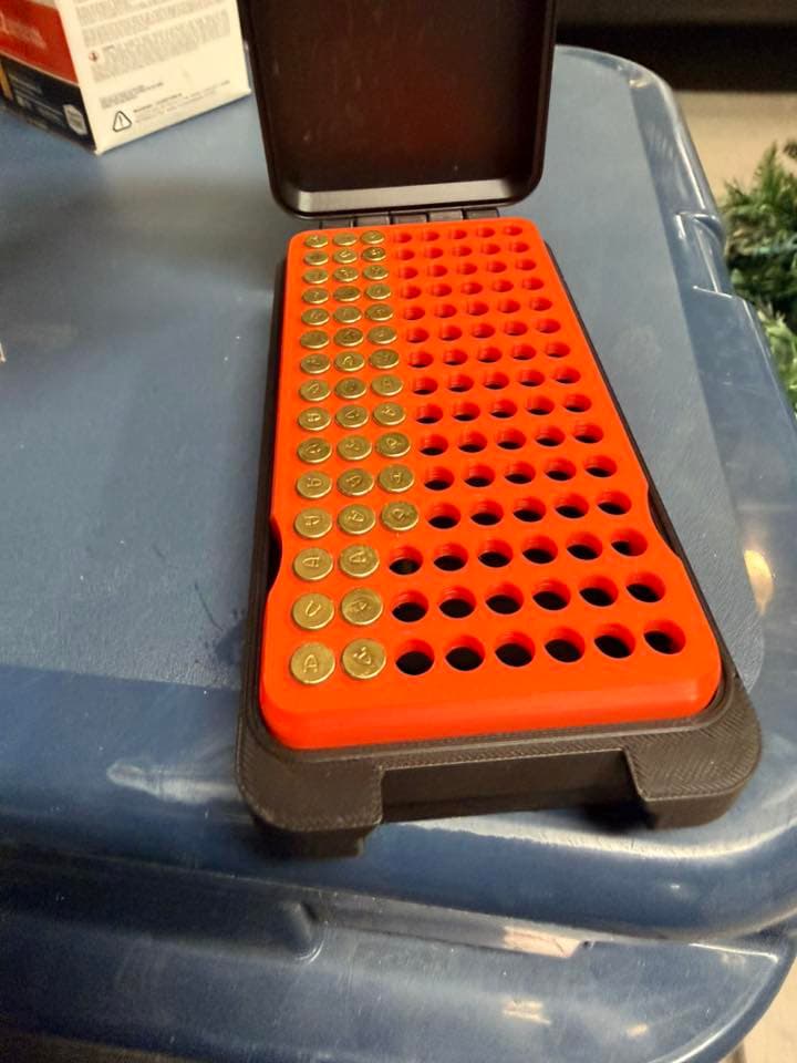 Stackable ammo storage with custom labels.